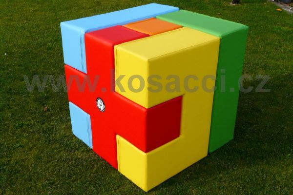 Velká molitanová multifunkční skládací kostka obsahuje 6 dílů. Děti si z ní mohou stavět překážkové dráhy, průlezky, mosty, cvičební podložku, ... fantazii se meze nekladou. Určené pro předškolní děti.