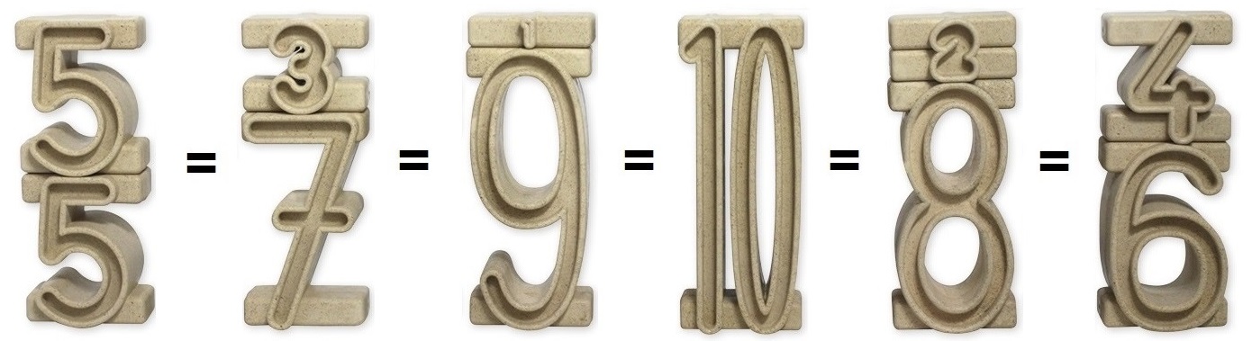 Skládáním jednotlivých čísel na sebe lze vytvářet číselné věže. Součet čísel sestavené věže vždy odpovídá výšce věže v centimetrech.
