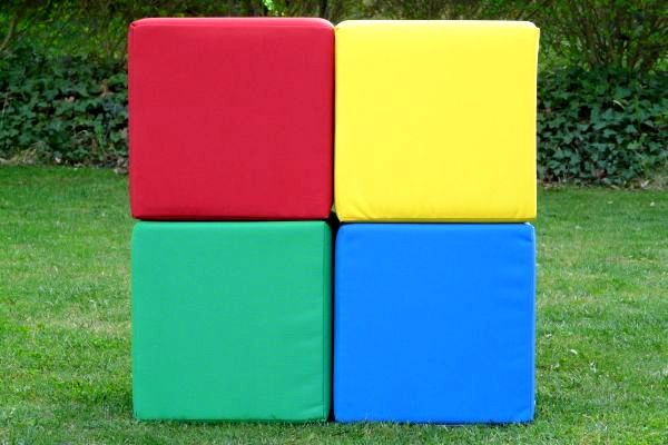Sada čtyřech molitanových kostek ketré mohou sloužit i jako sedátka.
