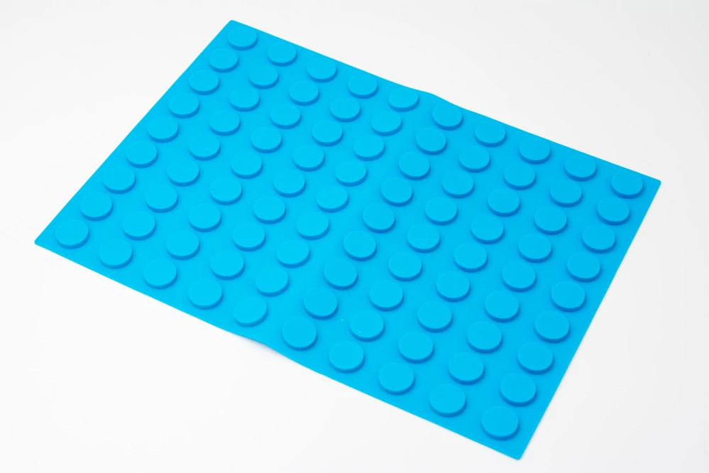 Modrá hrací deska ke stavebnici PIX-IT Big o velikosti 35 x 25 cm z příjemného, velmi kvalitního a bezpečného potravinářského silikonu.